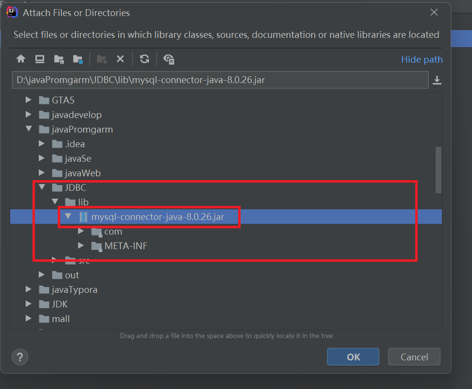 - 在弹出的窗口中选择刚刚导入 lib 文件夹的驱动,点击Ok