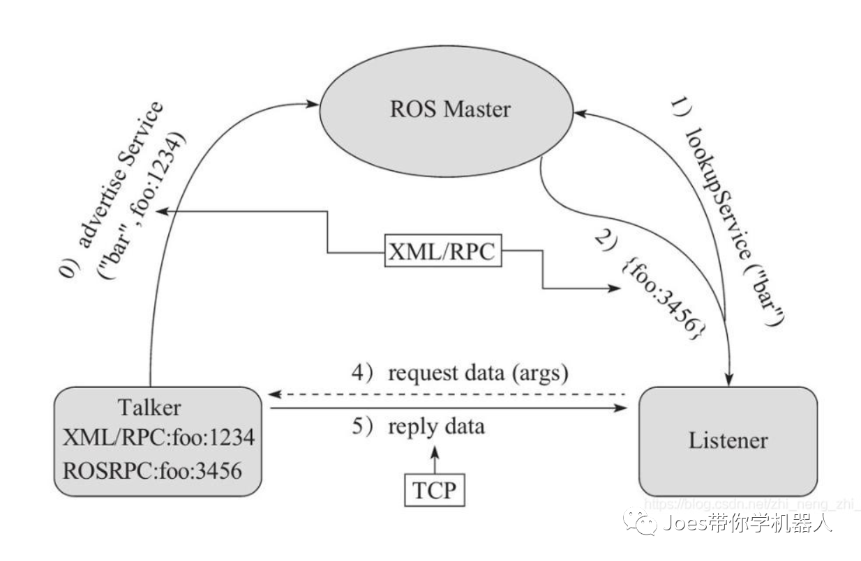 服务通信与 话题通信的 连接和通信 步骤都是一样的。唯一不同的是服务通信是有应答的。