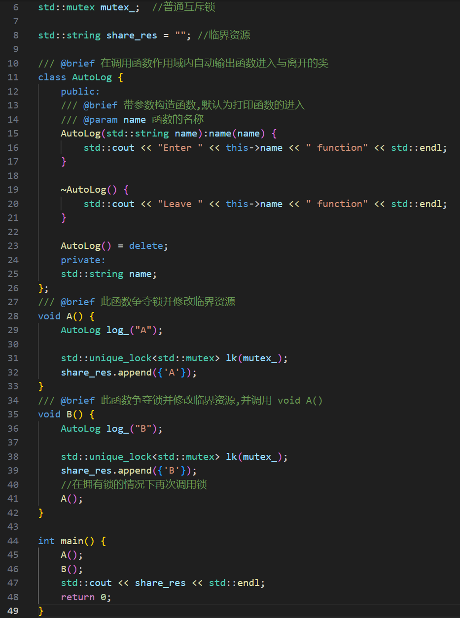 std::recursive_mutex允许同一个线程对同一个锁对象进行多次上锁,获得多层所有权.