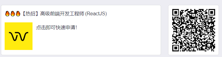 最近我们公司在招聘【前端软件工程师】和【高级前端软件工程师】两个职位,坐标上海浦东张江,有兴趣的读者欢迎扫描下方二维码了解详细信息。