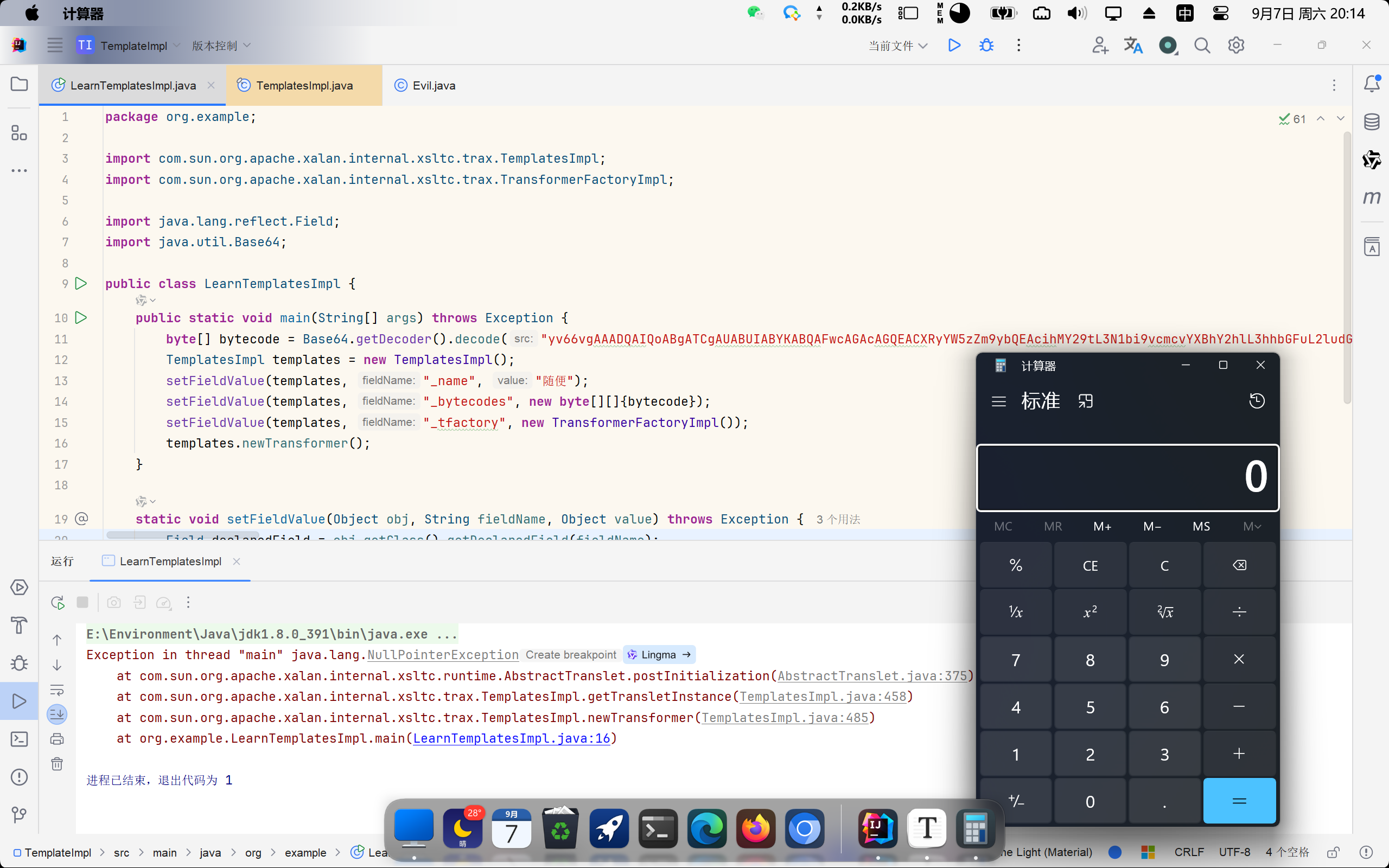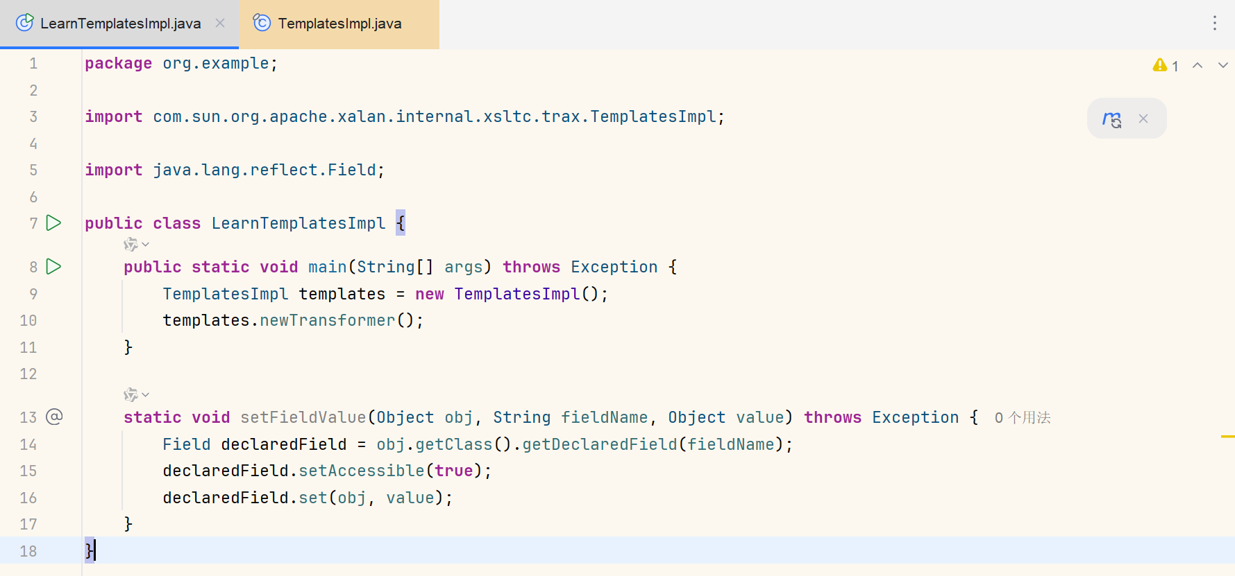 请注意,由于defineTransletClasses方法的限制,所以编写的被加载的类必须继承自com.sun.org.apache.xalan.internal.xsltc.runtime.AbstractTranslet