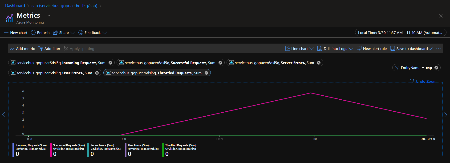 让我们生成一些负载并查看 Azure 服务总线的指标。