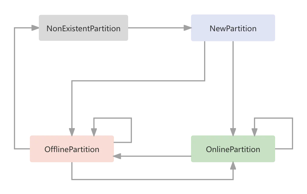 - NonExistentPartition 初始化状态,如果新建Topic,partition默认则为此状态