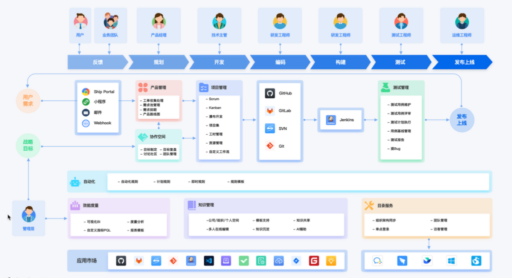 该平台适用于那些需要持续交付和敏捷开发的企业,尤其是科技、互联网、软件开发等行业的团队。它能够帮助管理大型的多部门协作项目,确保各个环节都能在统一平台上进行高效协作,提升团队的整体工作效率。