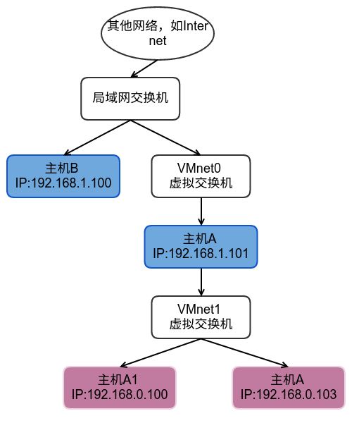 ps. 虚拟机访问公网是通过:虚拟机系统 –> 虚拟网卡 –> 实体机系统 –> 真实网卡 –> 路由器 –> 外网