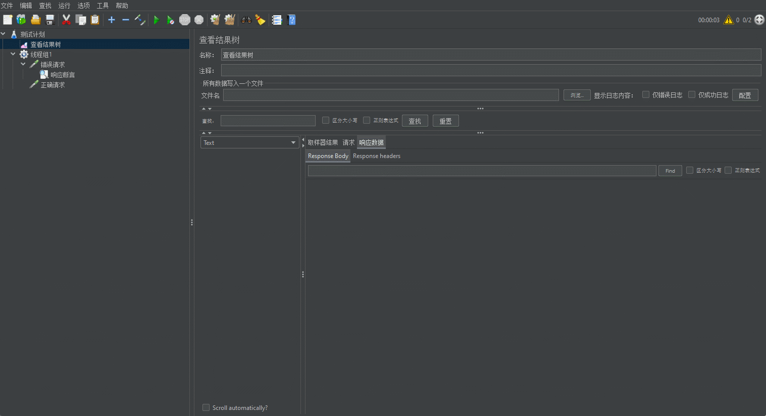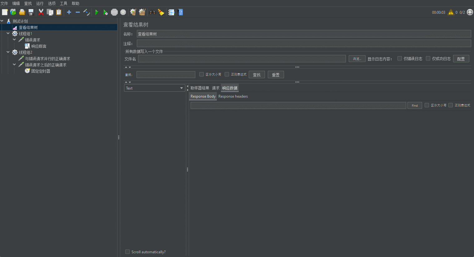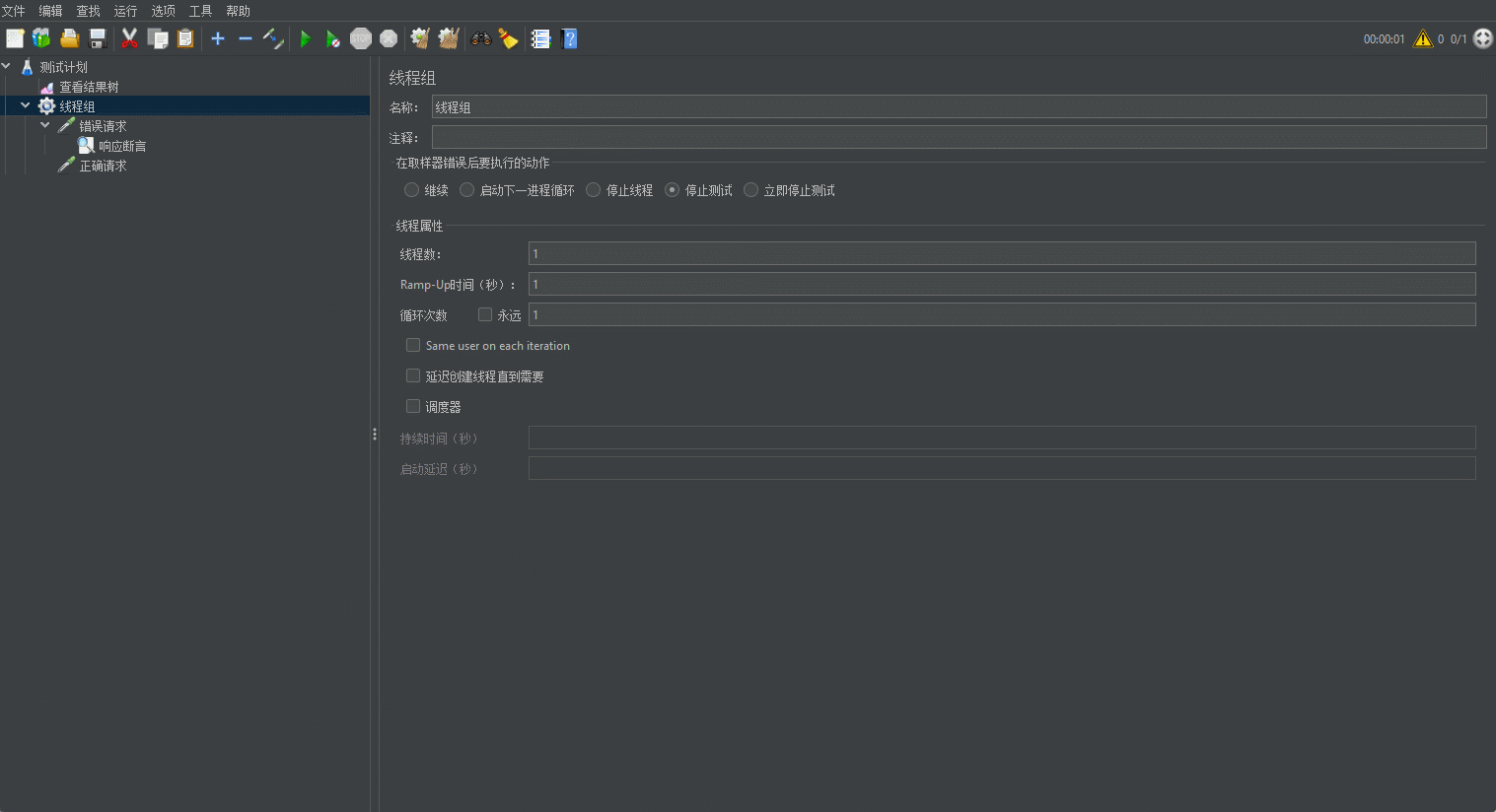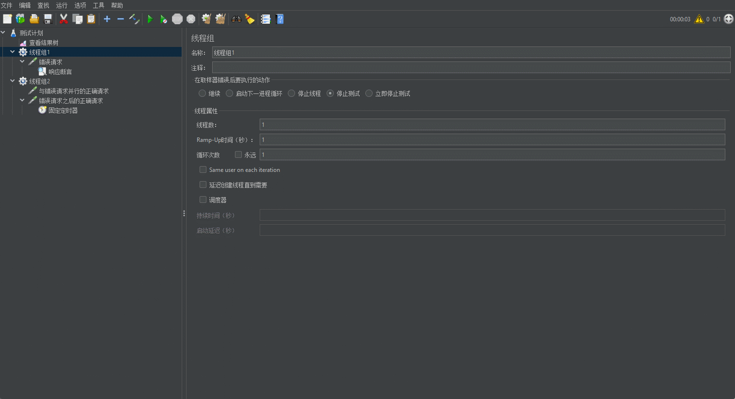 结束,Jmeter会直接结束本次测试,因此与错误请求并行的正确请求