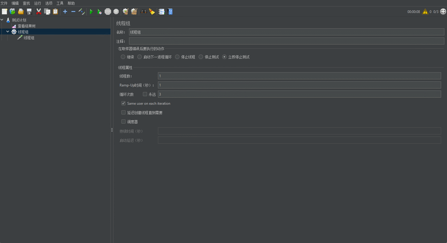 ,Jmeter启功了1个线程,连续执行了3次线程组