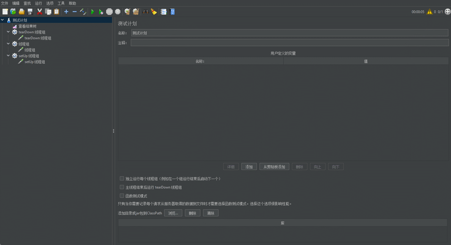在测试计划中,分别添加tearDown线程组、线程组、setUp线程组