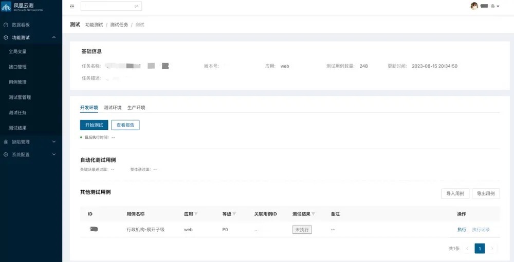 在版本回归时执行测试任务并生成测试结果与测试报告。