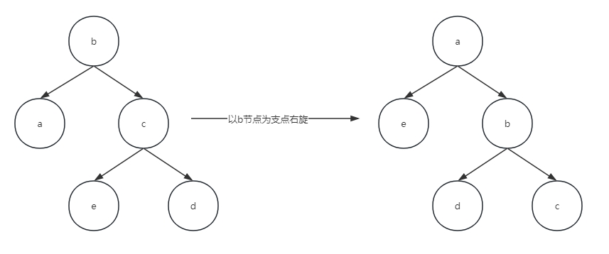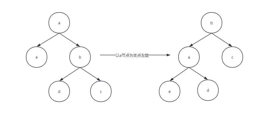 红黑树的左旋:以 a 节点为支点左旋,指将 a 节点的右子节点(b)设为 a 节点的父节点,则 a 节点变为 b 节点的左节点,b 节点原本的左子节点 d 则按照平衡二叉树的规则重新分配位置