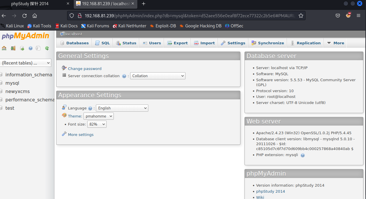 - 通过 nmap 扫描看到目标 web 服务器开放了 80,135,3306 等端口,通过对 80 端口的目录爆破,弱口令的 fuzz,发现了 phpmyadmin 的后台,并成功登陆。