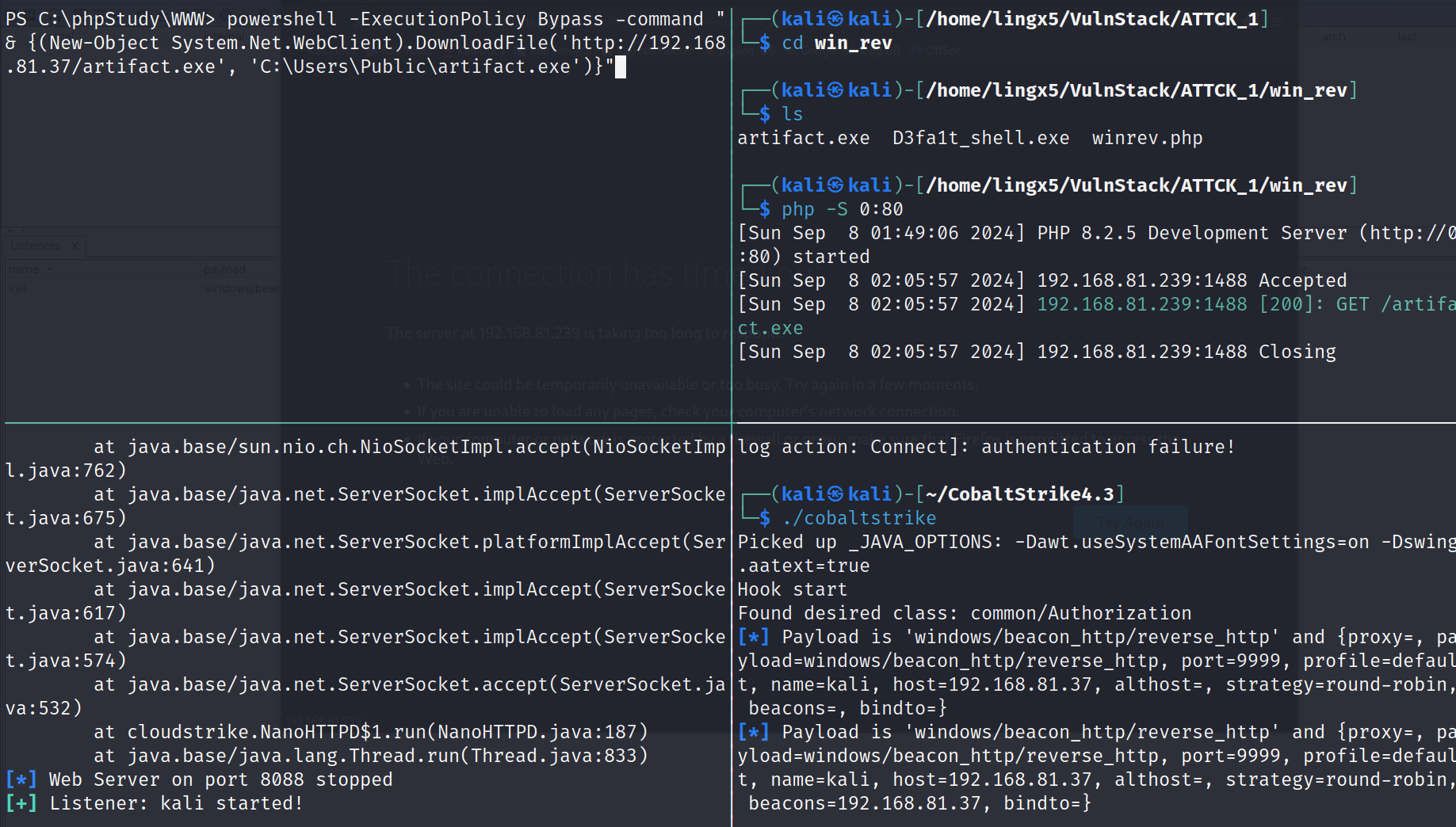 觉得会不会是用 php 执行代码返回来的 powershell 不是很稳定导致的