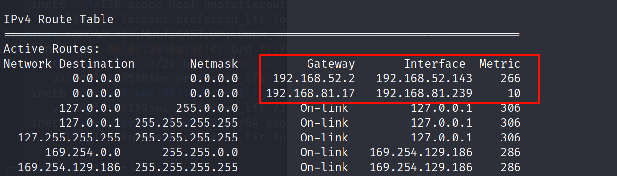 发现一块 192.168.52.0 网段的网卡,应该就是域对应的内网网卡,本机的 hostname 和域的信息也可以看到