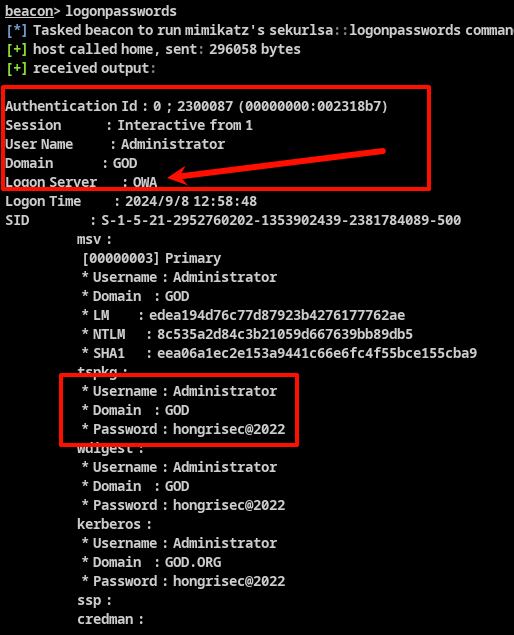 我们通过信息收集,知道了域控主机是 owa,域名为 god.org
