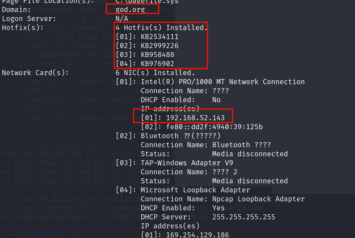 看到 domian 字段是 god.org 代表这是域内的机器。