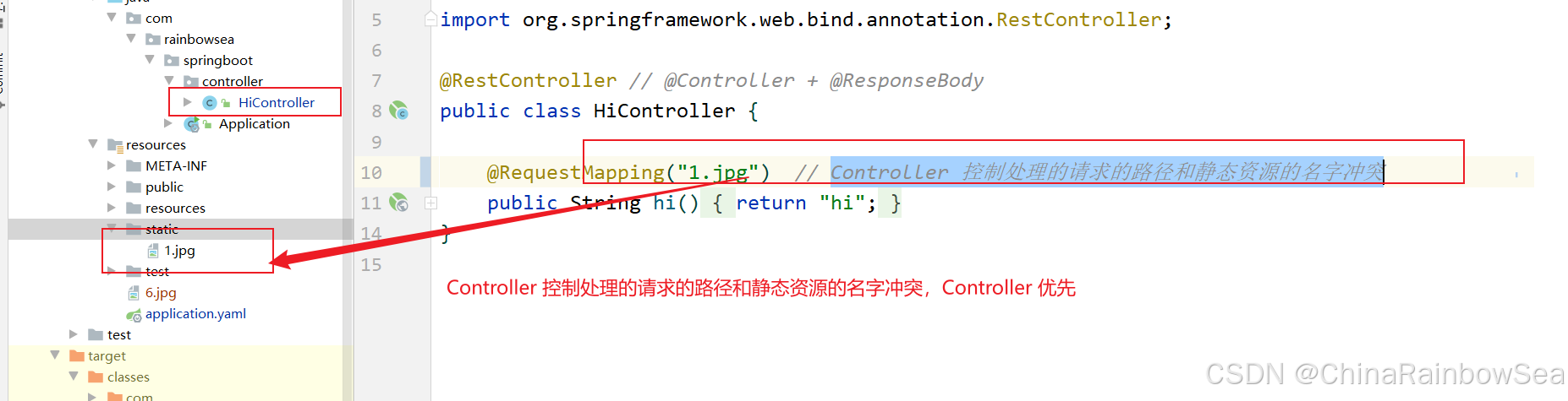 @RequestMapping("1.jpg") // Controller 控制处理的请求的路径和静态资源的名字冲突
