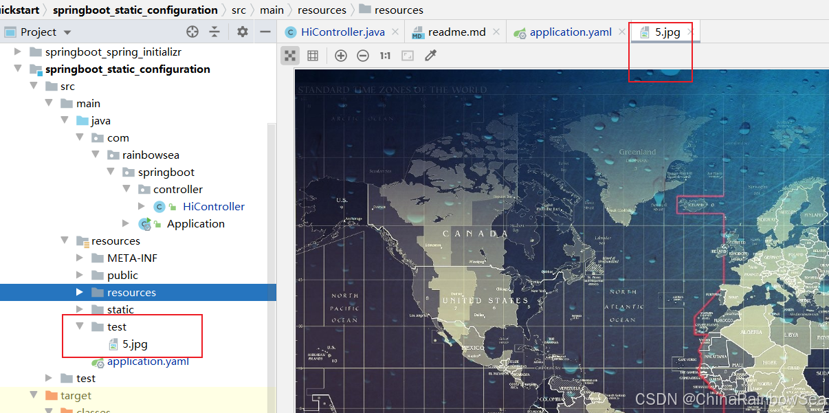 在 resources 类路径下,创建一个 test目录,同时在该目录下,放入一个名为 5.jpg 的图片,访问测试。