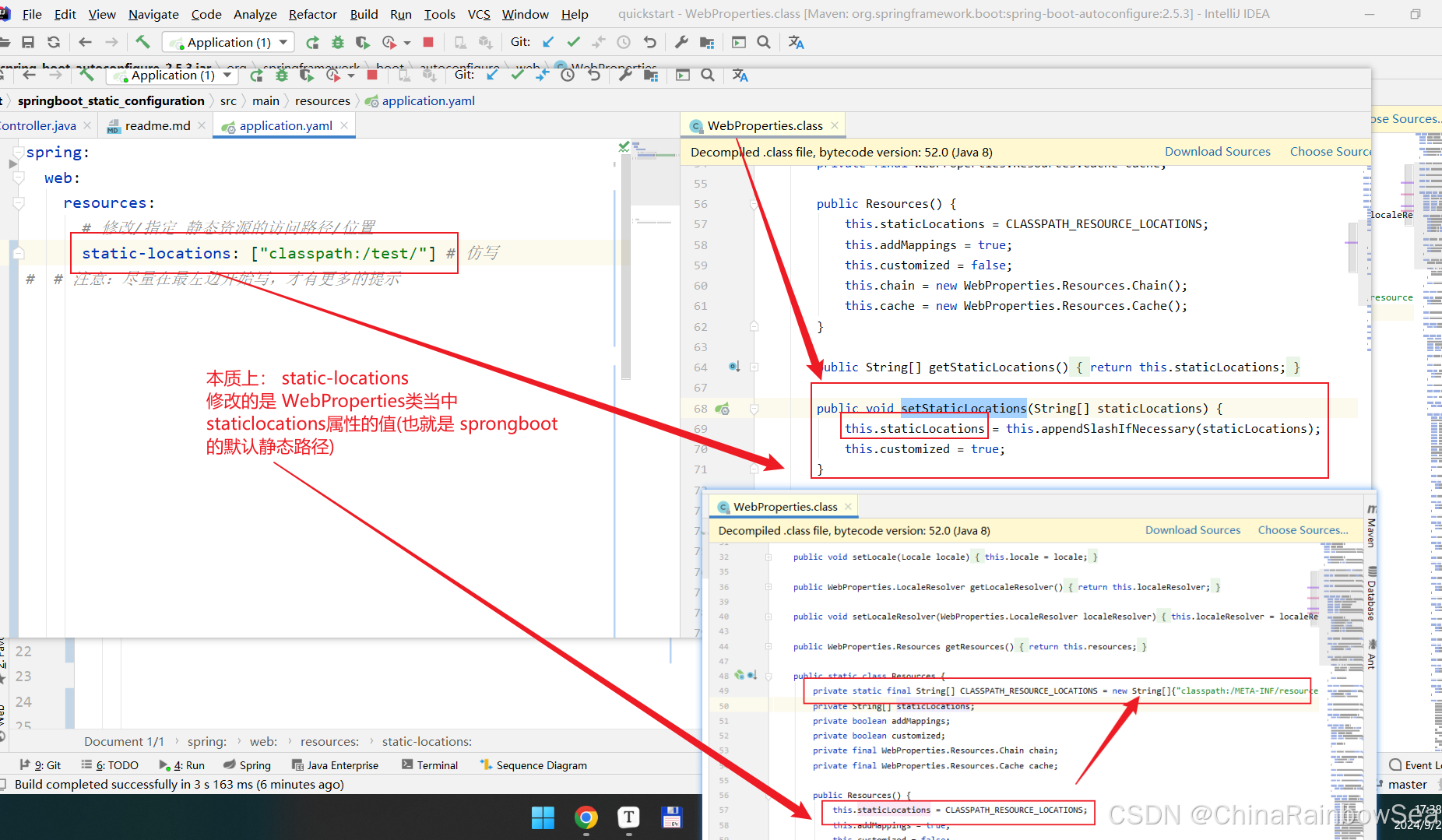 本质上: static-locations修改的是 WebProperties类当中staticlocations属性的值(也就是 springboot
