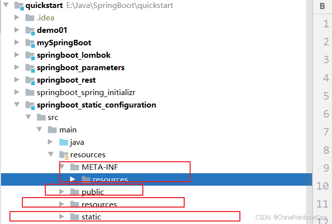下面:我们分别在 resources 类路径下,创建对应的Spring Boot 默认的四个目录。如下图: