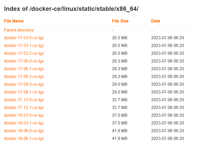 # 下载 Docker docker-23.0.6.tgz 为例 (当前最新版本 docker-27.2.0.tgz)