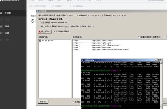 5. 在本地另一个SH客户端执行脚本如下,发现APPSCAN已经记录