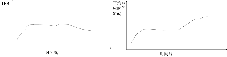当系统出现TPS下降而平均响应时间缓慢上升,可能是系统已经出现了性能的拐点,达到了最大的处理能力了。此时需要做一下如下检查