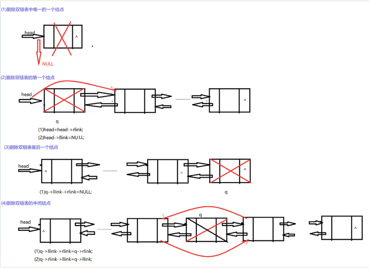 dnode* del(dnode* head, datatype x)//删除值为x的结点