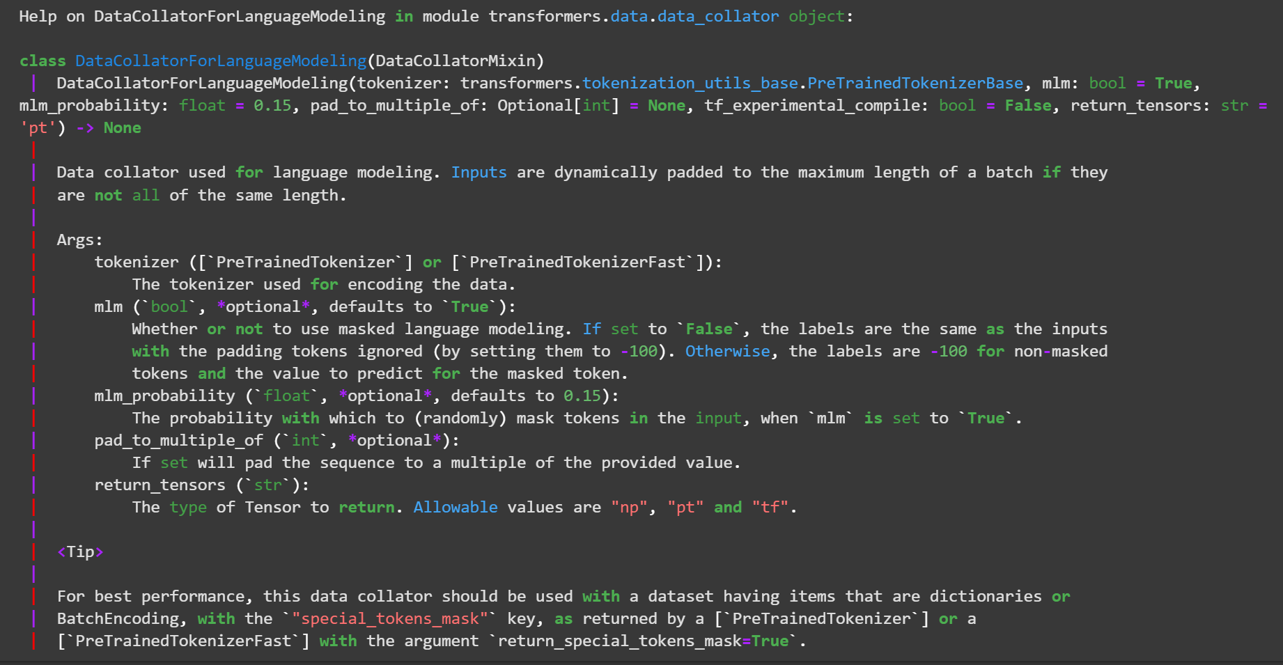 data_collator = DataCollatorForLanguageModeling(tokenizer, mlm=False)