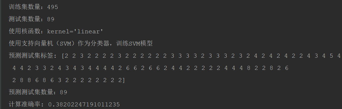 kernel=’linear’, 计算准确率: 0.38202247191011235