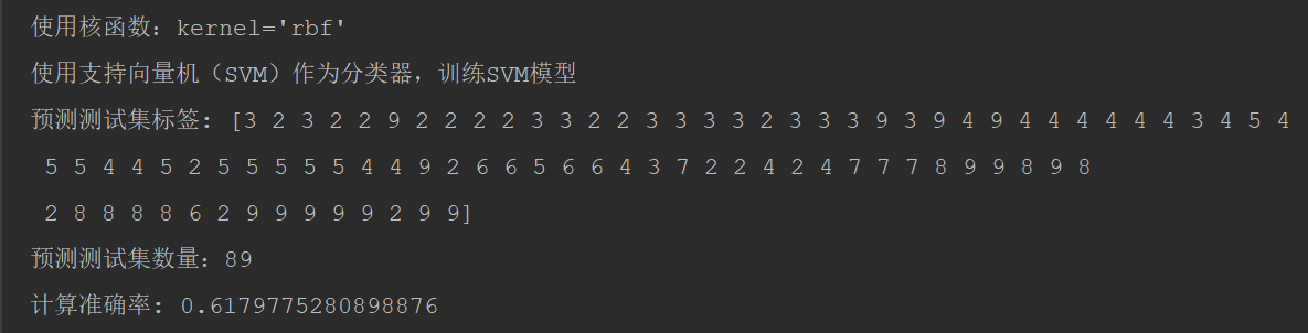 kernel=’rbf’, 计算准确率: 0.6179775280898876