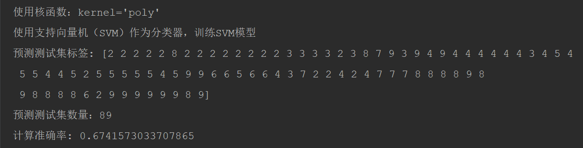 kernel=’poly’, 计算准确率: 0.6741573033707865