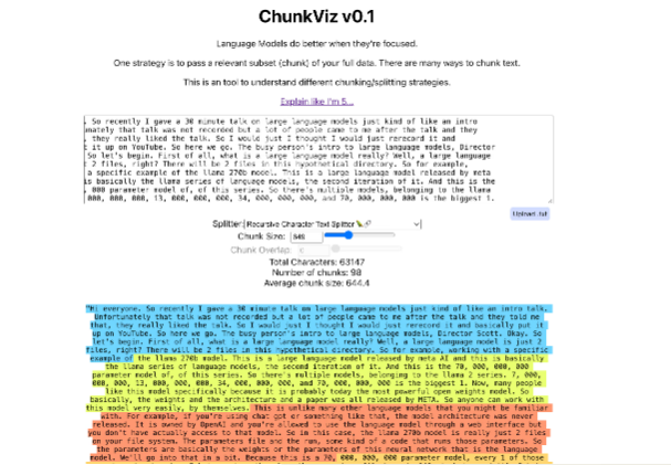 上述代码会获取我们转录的文本,根据我们设置的大小和重叠值将其分块,然后上传到 Pinecone 中的索引。