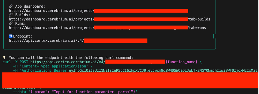 要将此应用程序部署到 Cerebrium,只需在终端运行以下命令: cerebrium deploy。