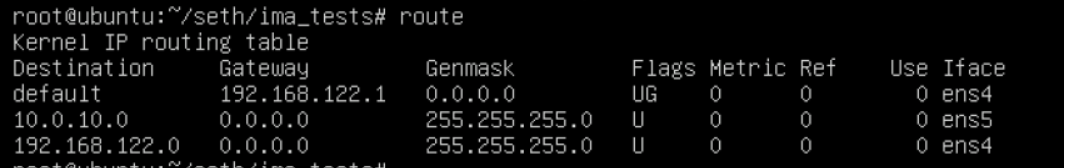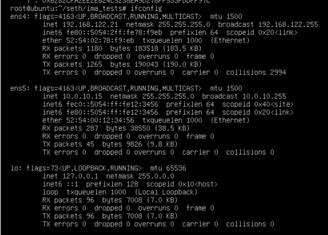 使用 VNC 通过 5995 端口登录虚拟机,进一步使用ifconfig命令查看虚拟机内部的网卡配置,发现存在 ens4 和 ens5 两张网卡。其中 ens4 网卡绑定了 192.168.122.21 地址, ens5 网卡绑定了 10.0.10.15 地址。根据之前在宿主机上查看虚拟机配置情况,知道 10.0.10.x 网段是虚拟机内部的网段,因此正常情况下该虚拟机的网关应该是绑定了 10.0.10.15 地址的 ens5 网卡。而网关应当是 10.0.10.0/24 网段内的一个地址,一般是前几个 IP 地址,可以逐个通过ping命令尝试。在这里我尝试到 10.0.10.2 时显示可以 ping 通,因此可以大概率假定该 IP 地址为网关地址。