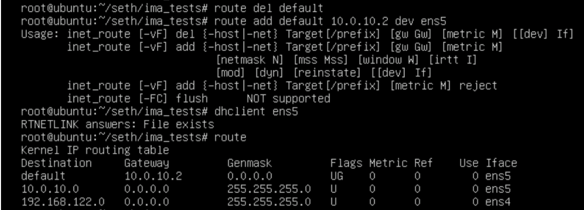 相应的解决方案就是修改路由表,重新定向默认网关。这里先删除当前默认的 ‘default’ 路由,然后采用dhclient命令通过指定网卡直接生成新的默认路由表。