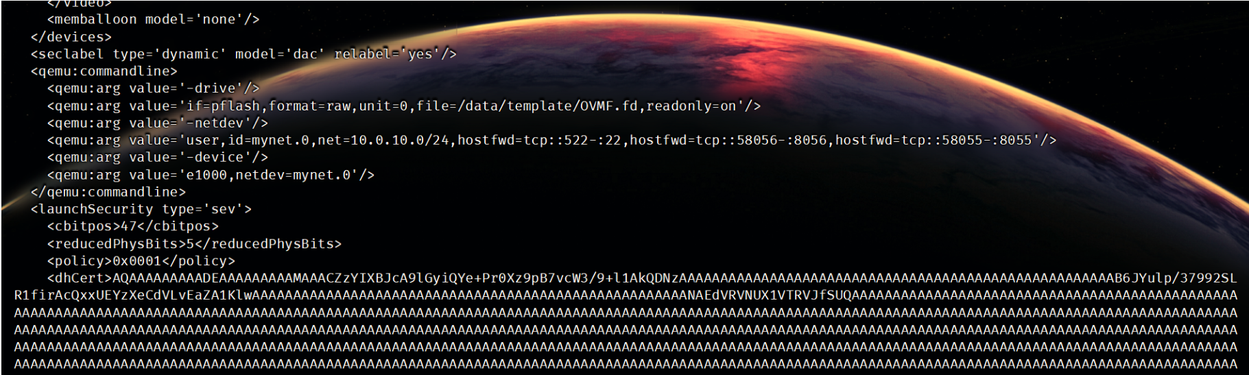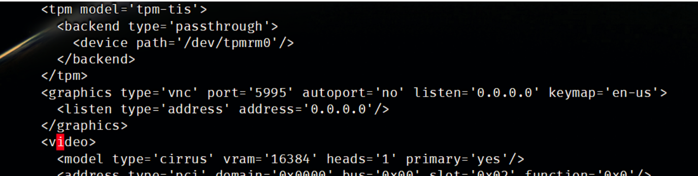 在配置中包含访问虚拟机的VNC端口(5995),通过该端口可以使用vncviewer软件设置访问该虚拟机。