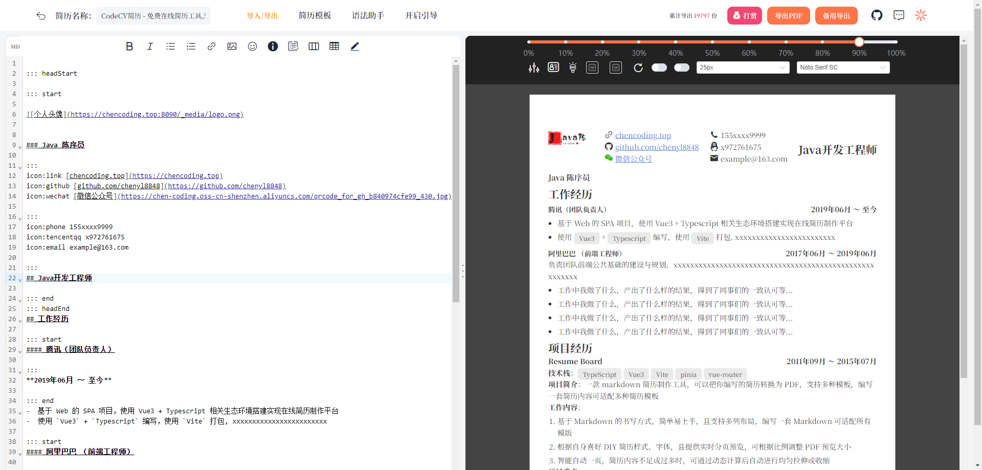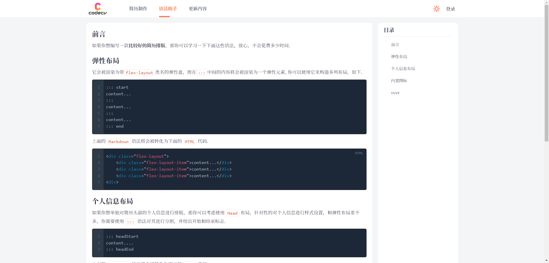 的语法,就能快速生成一份优美的简历,省去了排版的烦恼~