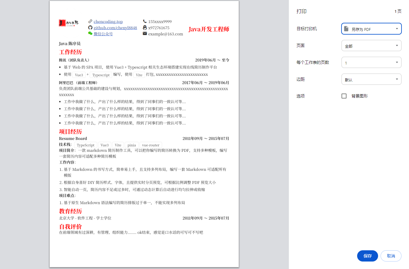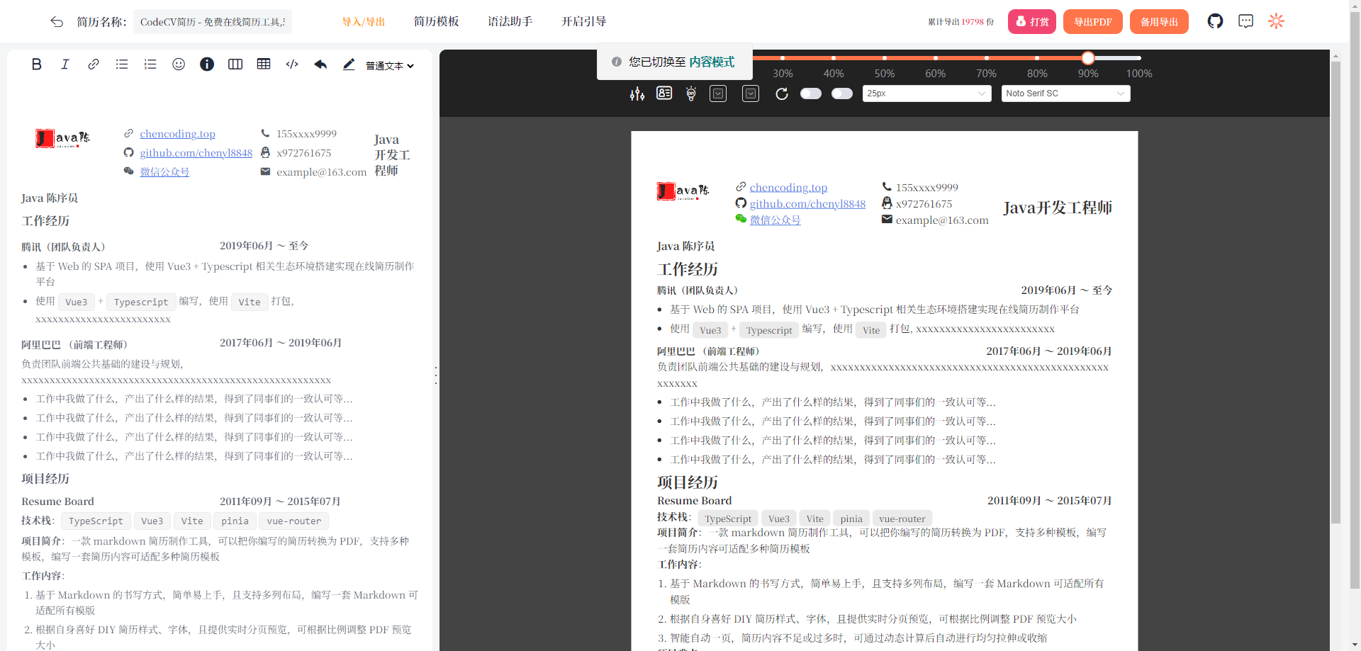 是一款非常优秀的简历生成工具,只要掌握了 Markdown