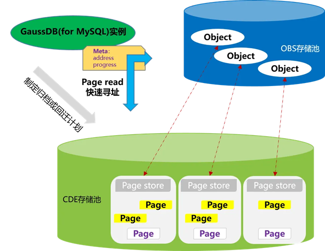 1. 并行地从分布式存储中抽取冷数据对应的页面组装成Object,并快速地将冷数据归档到OBS中,实现数据0丢失。