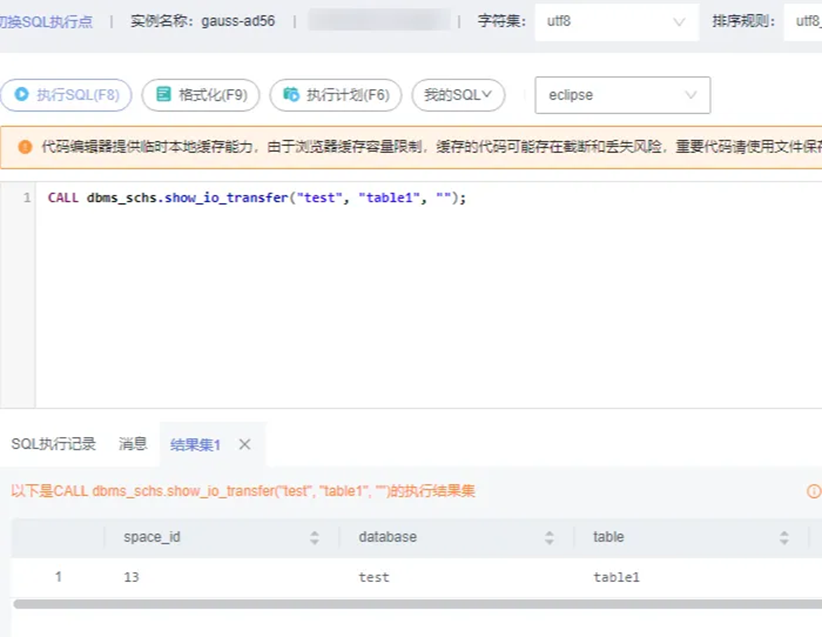 CALL dbms_schs.show_io_transfer(“库名”, “表名”, “分区名”);