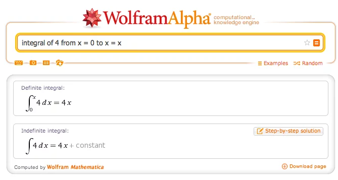 如果我们知道 4x 的导数是 4,那么如果有人问 4 的积分,我们就可以回答 “4x”(当然还要加上 C)。