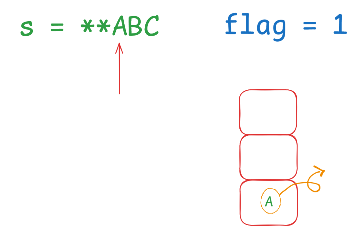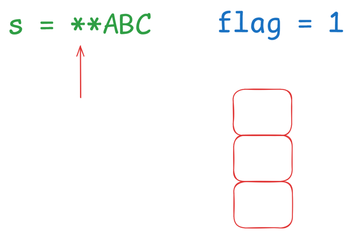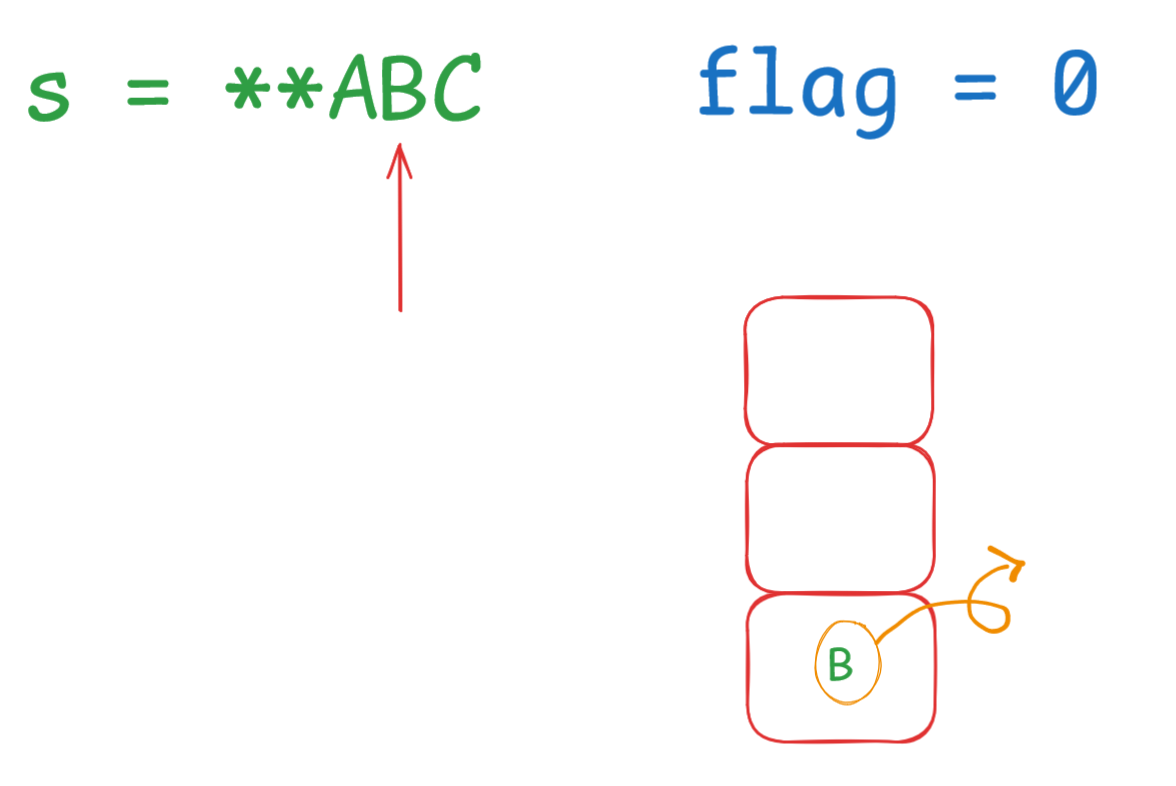分别对应下面两种栈处理流程。先看 A * 位置的处理流程: