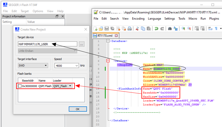 - Note:关于 XML 添加方法详见痞子衡旧文 《从JLink V7.62开始优化了手动增加新MCU型号支持方法》