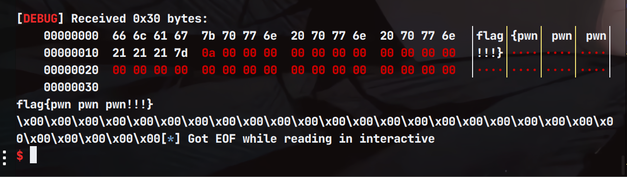 orw += b'flag\x00\x00\x00\x00' + p64(0xdeadbeef)