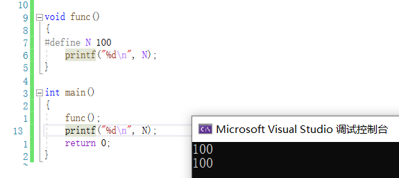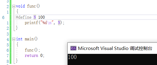 结论:源文件的任何地方,宏都可以定义,与是否在函数内外无关.