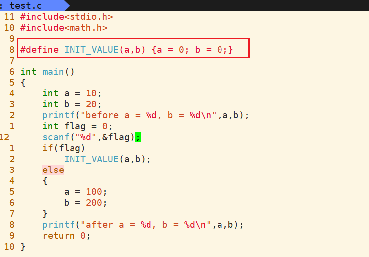 #define 宏定义是个演技非常高超的替身演员,但也会经常耍大牌的,所以我们用它要慎之又慎。它可以出现在代码的任何地方,从本行宏定义开始,以后的代码就都认识这个宏了;也可以把任何东西定义成宏。因为编译器会在预编译的时候用真身替换替身,而在我们的代码里面却又用常常用替身来帮忙。看例子: