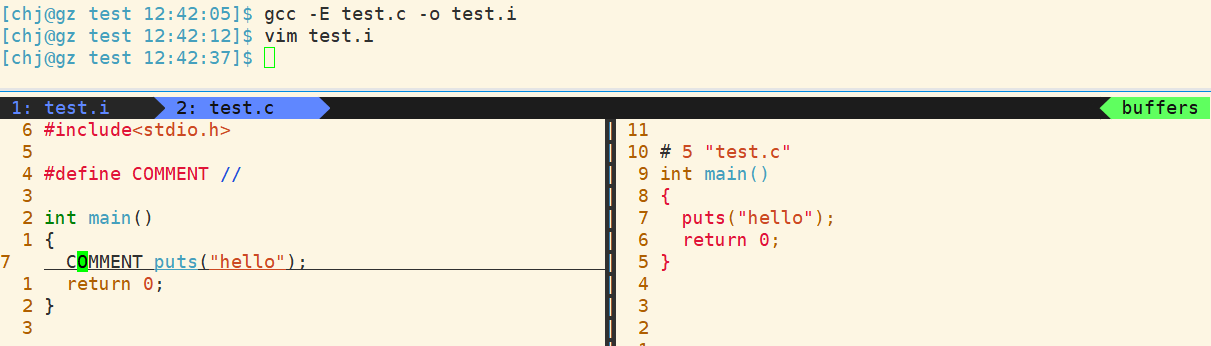 既然是先去注释再宏替换,那为什么预处理后却没有发现puts前面带双斜杠呢? 这就很尴尬了,其实在#define COMMENT //