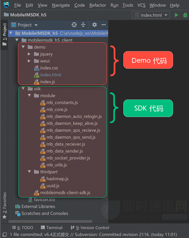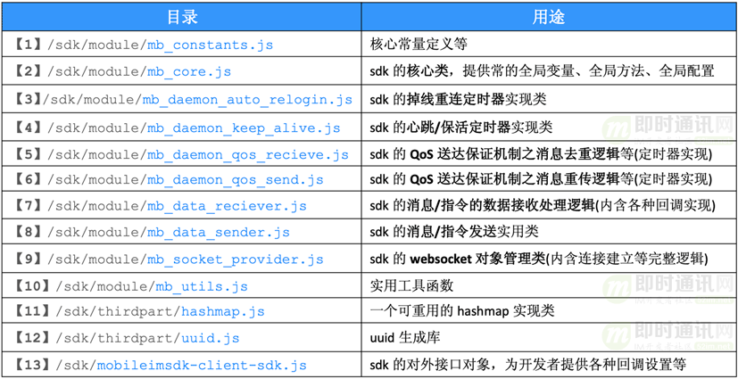 - 9)前端代码解耦:实现了UI前端代码与sdk网络通信代码解偶,防止前端代码跟IM核心代码混在一起,不利于持续升级、重用和维护;